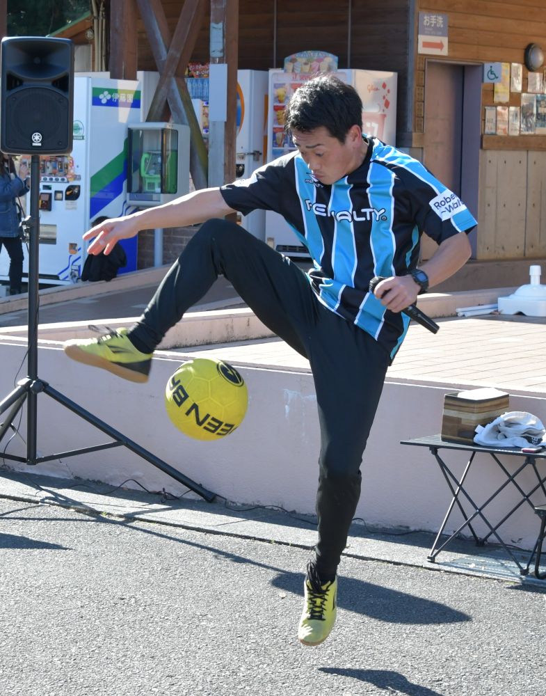 11月15、16日午前11時~午後3時は、同市出身のフリースタイルフットボーラーのTOMMYさん(トミー、本名・富永正道さん)のパフォーマンスショーが開かれる=下写真(常陸太田市提供)。場所は物産センター前。見学は無料。