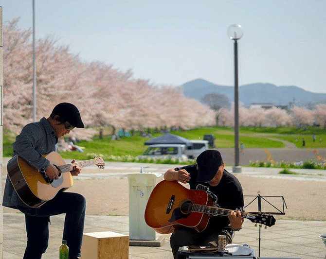 「アコギでロックを」を、コンセプトに活動する水戸市と笠間市の男性2人組。「どんな楽曲もストレートなロックに仕上げて披露します」と2人。街、ストリート、マルシェで活動している。