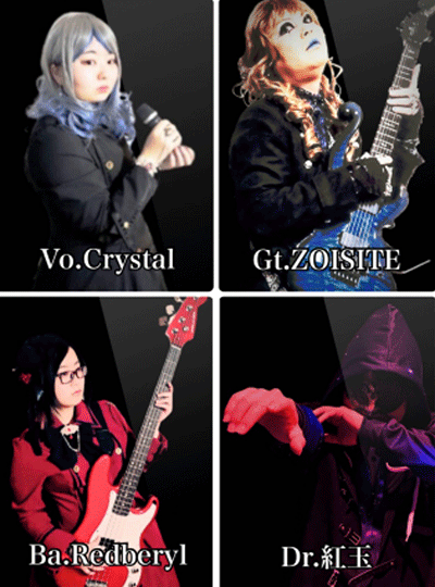 メンバーは、ボーカルでリーダーのクリスタル(水晶)、ギターのジイサイト(タンザナイト・灰簾石)、ドラムの紅玉(ルビー)、ベースのレッドベリル(赤いエメラルド)の4人。