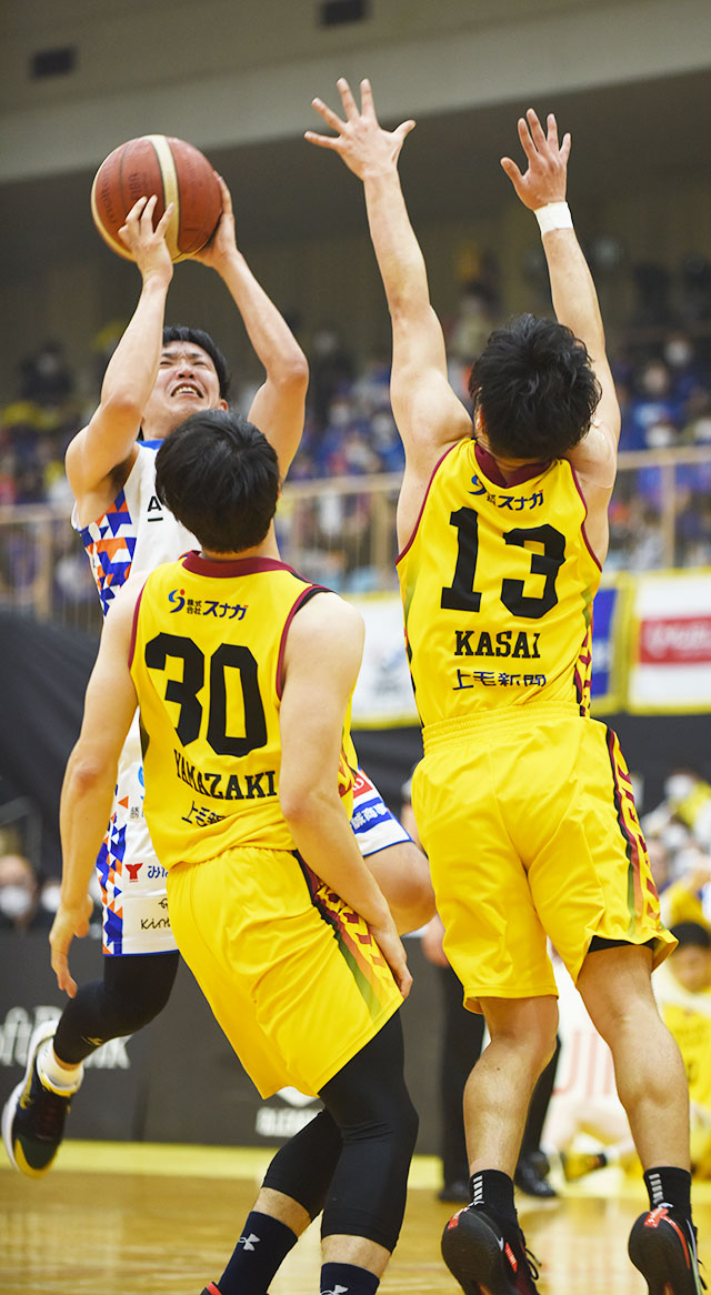 第2クオーターまでは、わずかな差で群馬がリード。第3クオーターで12点差に広がる場面もあったが、ロボッツの気持ちは切れない。第4クオーターで逆転した。
