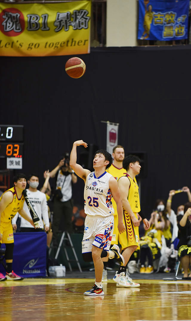 終了時のスコアは61-55で群馬がリードだが、第3クオーターのみの小計は、21-19でロボッツ。「我慢して、勝ち切る」という茨城のスタイルが形になりつつあった。